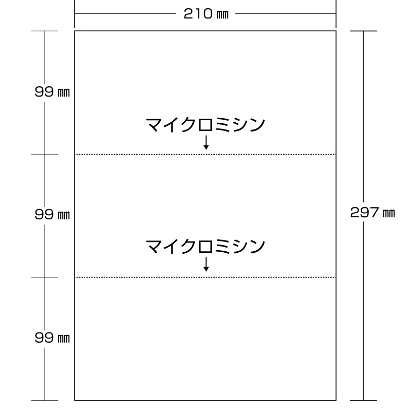 A4 ミシン目入り用紙  【3分割】 -上質70K (コピー用紙より厚め)  パンチ穴あり