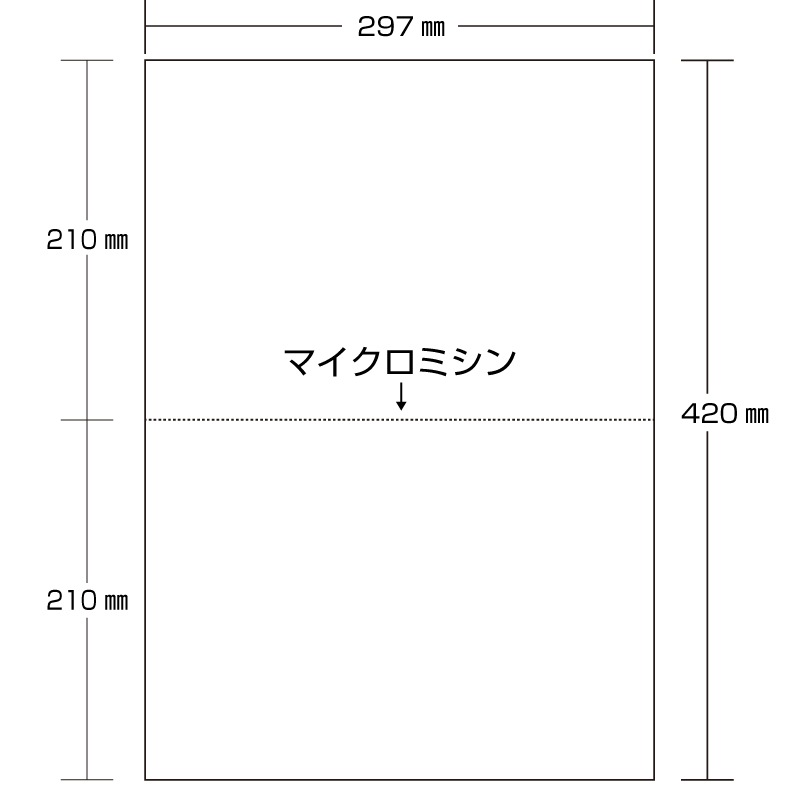 A3サイズ(297㎜×420㎜) マイクロミシン又はは普通ミシン 切取り後サイズ210mm×2枚 用紙 コピーペーパー 高配色タイプ 坪量 68gsm 白色度 93% 100%植林木パルプ使用